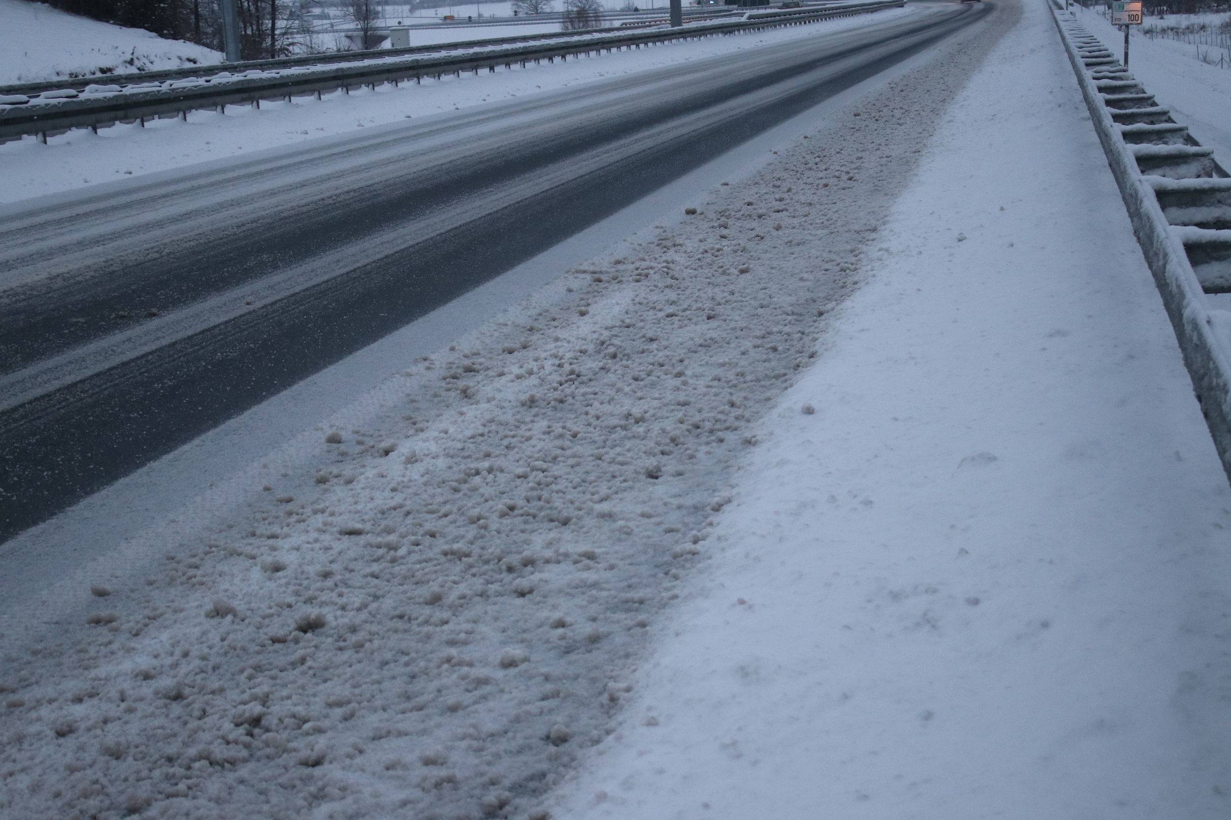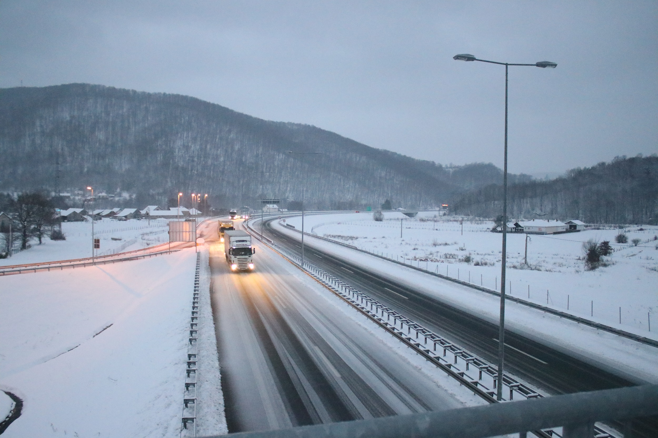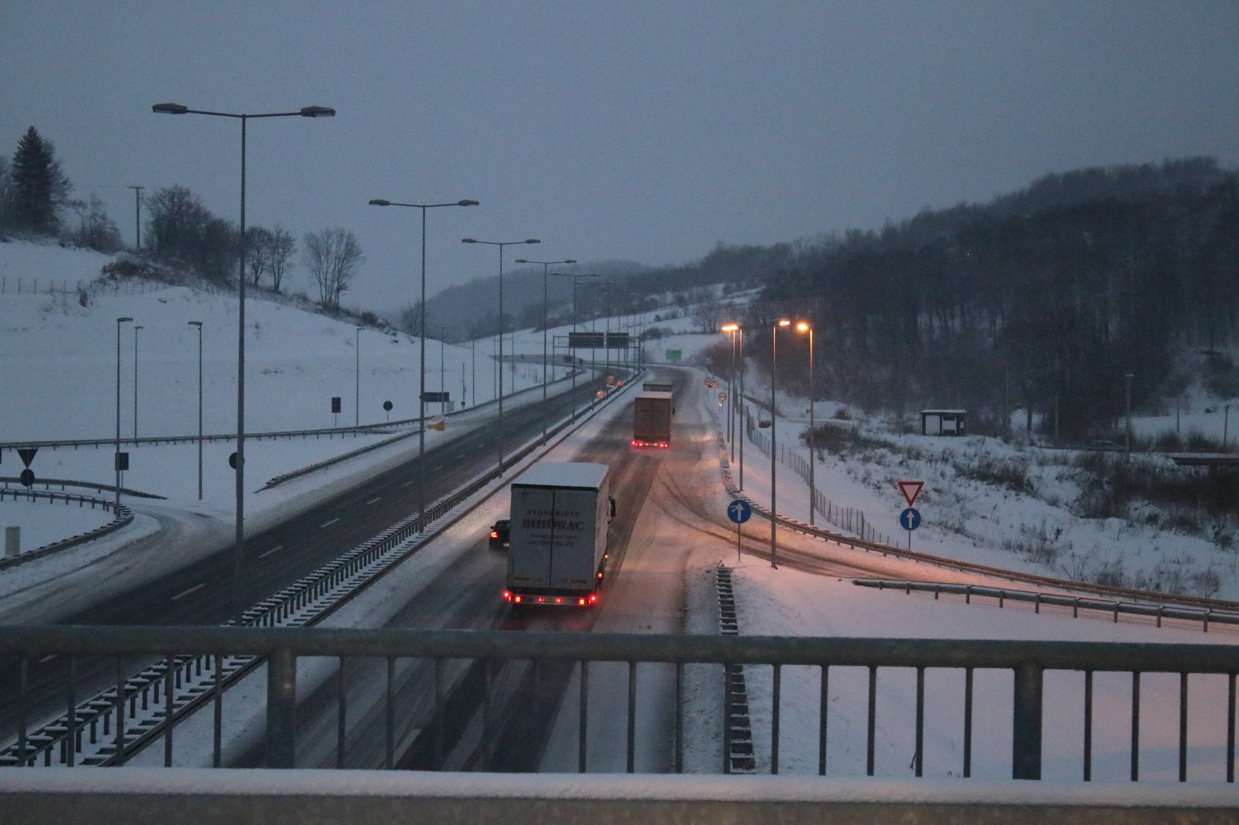 На деоници ауто-пута од Прељине према Љигу, због обилног снега, веома је отежан саобраћај па се одвија у само једној траци у оба смера. Регистровано је и неколико застоја због мањих саобраћајних незгода, и возачима се препоручује да се крећу спорије, како би избегли проблеме. Репортер агенције РИНА тренутно пролази тим делом ове савремене саобраћајнице, и јавиће сваку промену на терену. Сва механизација предузећа „Штрабаг” које одржава ово подручје сада је у покрету, али снежни наноси отежавају рад машинистима. Регионална информативна агенције - РИНА