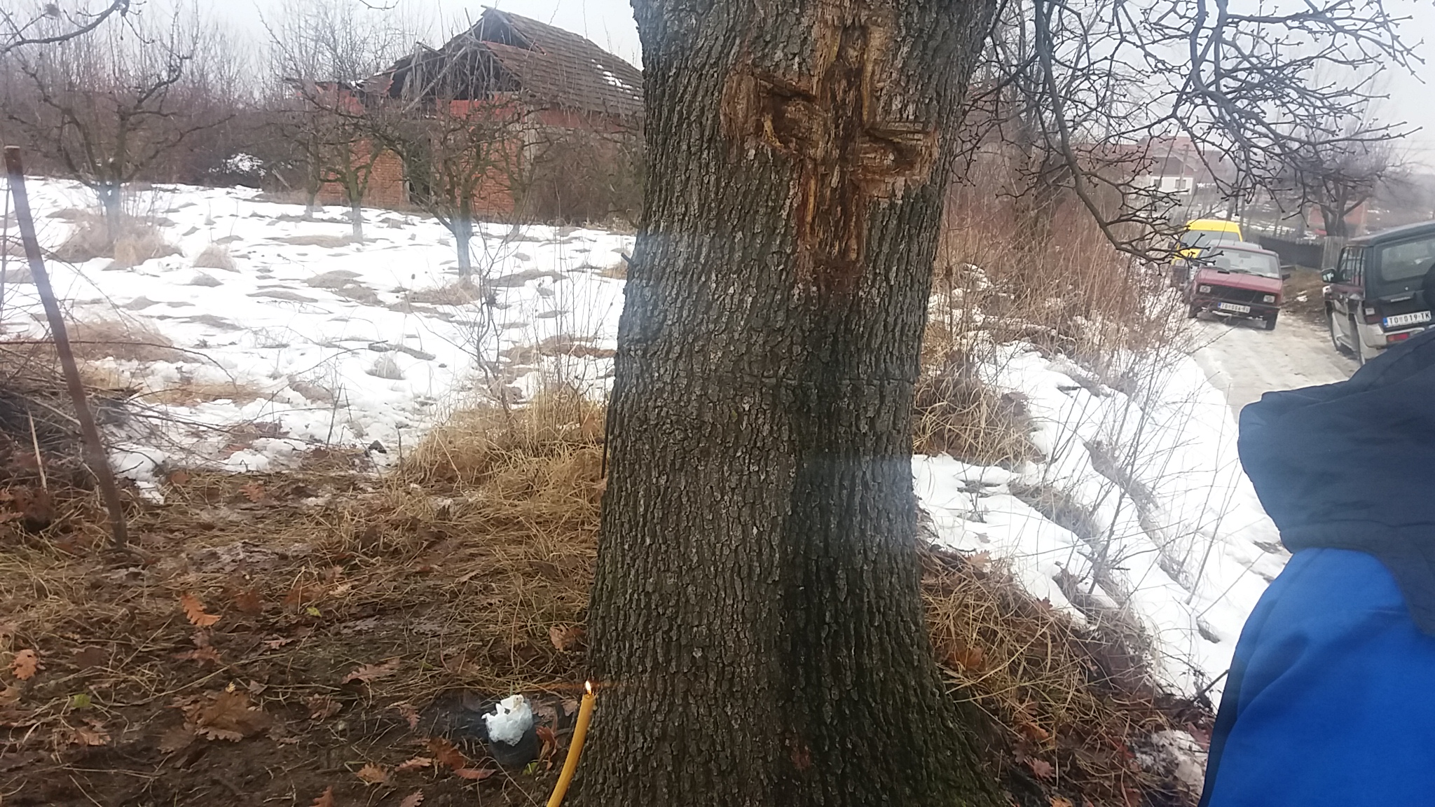 Топола – Често чујемо реченицу: „Ја сам заборавио да ми је рођендан“, али Предраг Мирковић из села Загорица није заборавио дан када је рођен ни село где је направио прве кораке. Иако је због посла отишао у оближње место Топола своје породично имање редовно посећује али и једно дрво поред пута. „Рођен сам 1955. године и све до 1974. године смо живели овде у селу Загорица. Кад сам се вратио из војске видео сам да живот на селу није као у граду и тада смо прешли у Тополу где сам радио у једној фабрици Ливница, касније у Аутосаобраћају као возач аутобуса и одатле сам отишао у пензију али и даље возим аутобус и радим. Направио сам својој деци куће, лепо живимо хвала Богу. Имам два сина, четворо унучади. Дошло ми је на сан да треба да имам запис где сам се родио. Прошле године смо у присуству свештеника Николе који је парохијан овде направили тај запис под овим храстом и ове године смо решили да га обновимо. Мој унук Лазар каже: „Деко нећемо без прасета“, па смо ето за госте спремили печење, испекао је мој унук Драган Јовановић, ту је и шумадијски чај да се загрејемо. Следеће године Боже здравља доводимо и музику“, прича слављеник Предраг Мирковић. Баба га заклела да своју шуму никад не продаје. „Ове јесени кад смо секли дрва ја сам секао јасење и комшије кажу: Што бре то не продаш добра је цена па купиш нека друга, али ја се сећам да ми је баба давних година пре ратова причала да та дрва никада не продам. Мене је баба заклела, сине кад сам ја у свим ратовима сачувала ова дрвета да се грејеш ти и твоја деца и унучићи,ја сад несмем да продам јер морам да грејем мене и моју децу. Тако је баба рекла и тако мора бити. Ово храстово дрво памтим још као дете било је исто велико, ето одабрали смо њега да буде запис јер је најближе нашој кући. Ове године је млађи син обновио запис следеће ће старији или неко од унучића“, објашњава Мирковић. Један од наследника који ће сигурно наставити традицију коју је Предраг започео је његов син Дарко. Очев рођендан и дрво Запис пренеће на своју децу као обичај који се мора поштовати. „Данас је мом оцу 64 рођендан, велики је празник Јован Крститељ и ево већ другу годину ми се окупљамо поред дрвета Запис које смо ми и обележили. Секиром обновимо овај крст који смо урезали мало засечемо корицу дрвета то је обичај. Раније Срби нису имали цркве и нису имали могућност да се моле на светим местима већ су углавном храстово дрво обележавали крстом као дрво Запис, ту су се молили то је било свето дрво. Ја сам подржао ову очеву жељу и то је један од начина да се сачува наша вера, традиција, обичај који су наши стари започели“, рекао је Предрагов син Дарко Мирковић. Регионална инфомативно новинска агенција РИНА